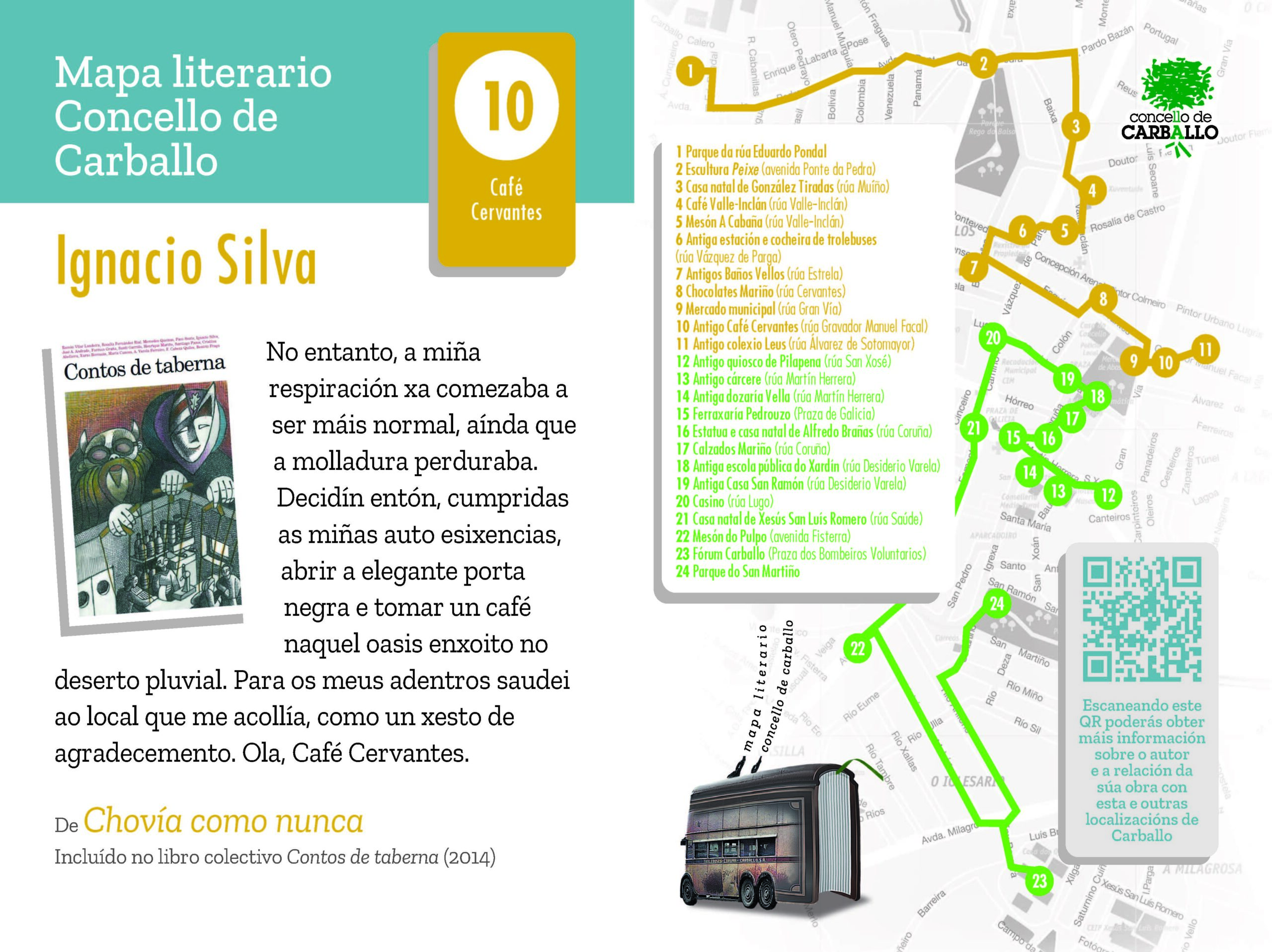 A porta negra estaba pechada. Pensaba que era elegante. Calquera pensamento era benvido nese intre mentres me ía recompoñendo. Cara a arriba, podía intuír que o edificio que se sostiña nos ombreiros do local debía ter moita historia. Encantaríame datalo, pero os meus coñecementos arquitectónicos só chegaban para ofrecer esa pequena reflexión. No entanto, a miña respiración xa comezaba a ser máis normal, aínda que a molladura perduraba. Decidín entón, cumpridas as miñas auto esixencias, abrir a elegante porta negra e tomar un café naquel oasis enxoito no deserto pluvial. Para os meus adentros saudei ao local que me acollía, como un xesto de agradecemento. Ola, Café Cervantes.