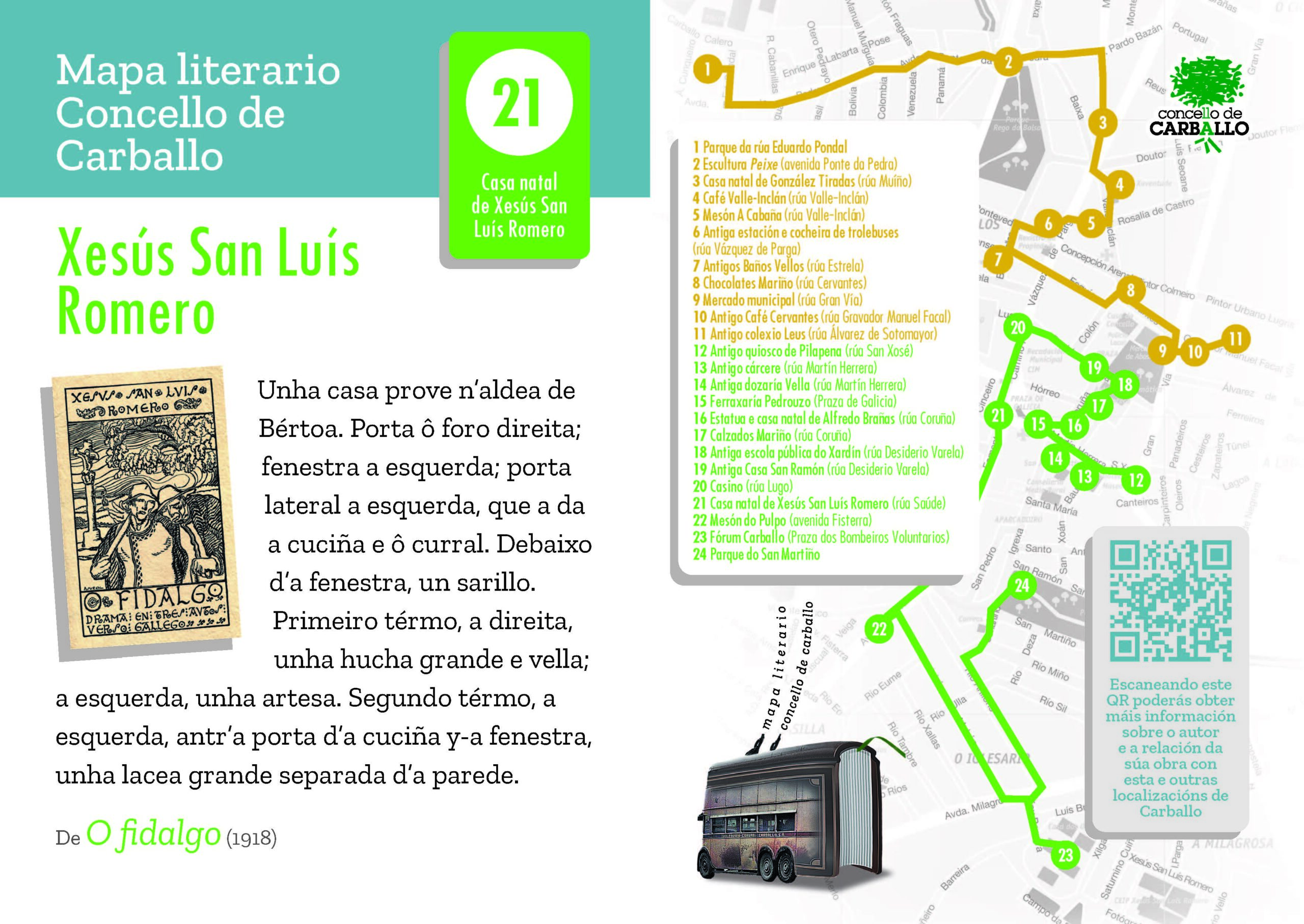 O Concello de Carballo presentou en decembro de 2012 o primeiro documental sobre a figura de Xesús San Luís Romero, un traballo que recolle testemuños, imaxes, literatura, historia e escenarios que permiten realizar un percorrido o máis aproximado posible pola vida e pola obra do ilustre autor carballés.